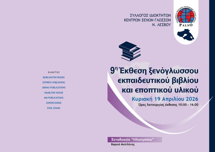 -Έκθεση Ξενόγλωσσου Βιβλίου και Εποπτικού Υλικού διοργανώνει στις 19 τρεχ., από τις 10 το πρωί έως τις 4 το απόγευμα, ο Σύλλογος Ιδιοκτητών Κέντρων Ξένων Γλωσσών Ν. Λέσβου στο ξενοδοχείο «Ηλιοτρόπιο» στη Βαρειά Μυτιλήνης.-Στο πλαίσιο της εκδήλωσης, οι επισκέπτες θα ενημερωθούν για τις νέες κυκλοφορίες ξενόγλωσσων εκπαιδευτικών βιβλίων από κορυφαίους εκδοτικούς οίκους, -ενώ θα γνωρίσουν το σύγχρονο εποπτικό υλικό και ψηφιακά εργαλεία για την εκ...