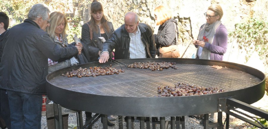 Την Κυριακή, στις 9 πμ, στις εισόδους και στα κεντρικά μέρη του χωριού θ' ανάψουν οι φωτιές στις παραδοσιακές φουφούδες για το ψήσιμο και το βράσιμο των κάστανων, που θα προφέρονται στον κόσμο μαζί με ούζο και κρασί.