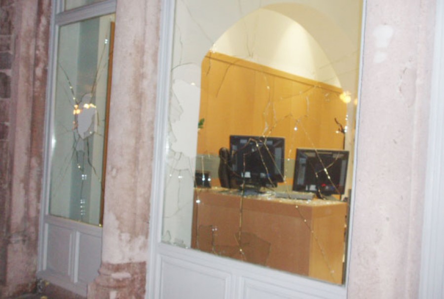 Η πορεία των λιγοστών διαμαρτυρομένων, κατέληξε σε βανδαλισμούς, καθώς στα παραρτήματα της τράπεζας Πειραιώς και μάλιστα σ' εκείνο που δεν ολοκληρώθηκαν ακόμα οι εργασίες ανακαίνισης, και στέγαζε την πάλαι ποτέ Αγροτική Τράπεζα, προκλήθηκαν εκτεταμένες ζημιές με σπασμένα τζάμια, στο μηχάνημα αυτόματης ανάληψης, ενώ μπουγέλα με χρώμα εκσφενδονίστηκαν, προκαλώντας φθορές στις μαρμάρινες και πέτρινες εισόδους και προσόψεις των τραπεζών
