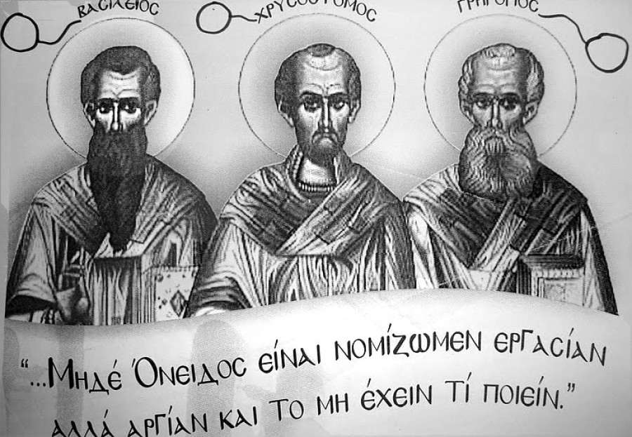 Με τη σκέψη στη μεγάλη εορτή των γραμμάτων και στους Τρεις Ιεράρχες, θέλησα να γράψω αυτό το ελάχιστο σημείωμα. Ομολογώ πως με δέος καταπιάνομαι έστω και λίγες λέξεις να χαράξω, αφού αυτές θα αναφέρονται στους τρεις μεγίστους φωστήρες της Τρισηλίου Θεότητος. Αυτούς που τους τιμούμε μαζί - εορτασμός που καθιερώθηκε, προκειμένου να τερματιστεί η διαφωνία μεταξύ των πιστών για το ποιος από τους τρεις ήταν ανώτερος και σπουδαιότερος Άγιος - στις 30 Ιανουαρίου όχι για την κοσμική τους γνώση και μόρφωση αλλά για τη Θεία Φώτιση που είχαν.