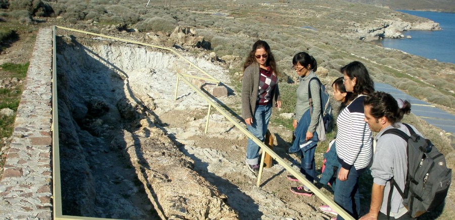 Ακολούθως, περιηγήθηκαν μέσα από τις ειδικά διαμορφωμένες περιπατητικές διαδρομές που έχει δημιουργήσει το Μουσείο στις 44 εντυπωσιακές απολιθωματοφόρες θέσεις και γνώρισαν το μοναδικής αξίας χερσαίο τμήμα του Απολιθωμένου Δάσους. Κατά τη διάρκεια της περιήγησης, επισκέφτηκαν τις εμφανίσεις απολιθωμένων δένδρων της οικογένειας των Ταξοδιείδων και το εντυπωσιακότατο εύρημα ενός γιγαντιαίου κορμού δένδρου με μήκος 17,20 μέτρα και τους μοναδικούς κατακείμενους και ιστάμενους κορμούς δέντρων που έχουν έρθει στο φως από τις ανασκαφικές εργασίες που πραγματοποίησε στη Νησιώπη το Μουσείο.