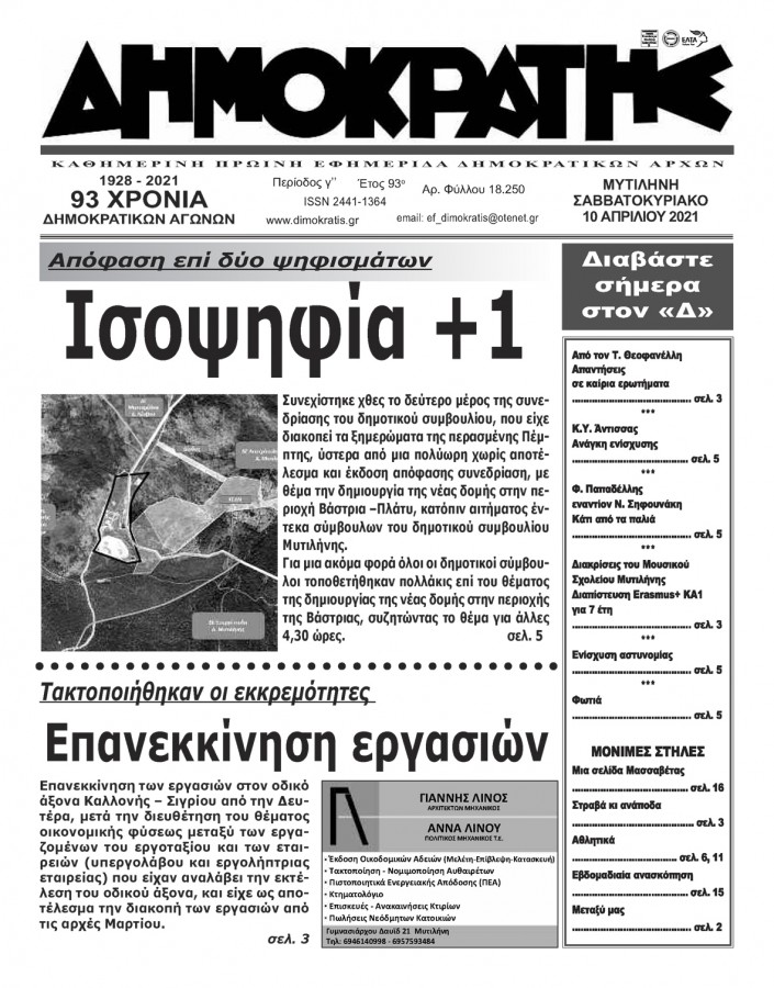 ΕΦΗΜΕΡΙΔΑ ΜΥΤΙΛΗΝΗΣ