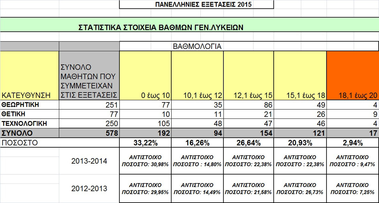 Δυστυχώς, τα πολύ καλά, όπως και τα άριστα γραπτά συμπιέστηκαν αρνητικά. Το 20,93% των γραπτών, ήταν εκείνα που βαθμολογήθηκαν από 15,1 έως 18, ενώ μόλις το 2,94% βαθμολογήθηκαν από 18,1 έως 20, την ώρα που πέρυσι οι μαθητές που έγραψαν άριστα ήταν 9,47%.