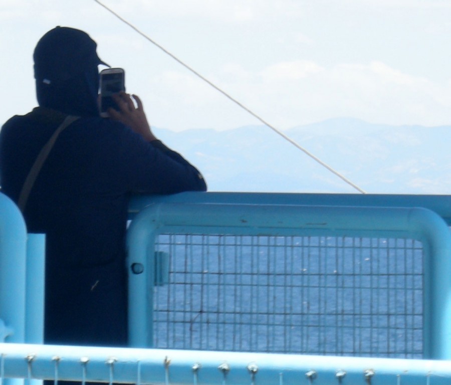 -Η κυρία επί ώρα λαμβάνει φωτογραφίες απ' όλο το μήκος της ακτής και των απέναντι παραλιων.