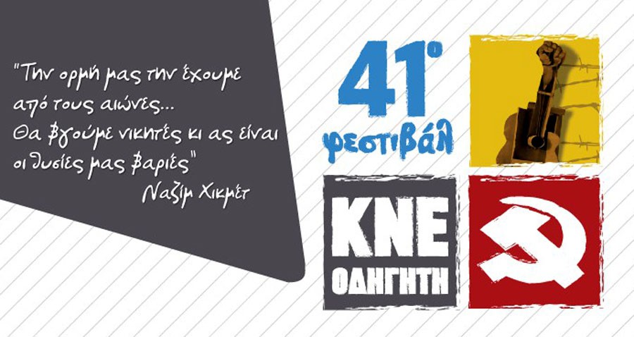 -Το 41ο Φεστιβάλ εντάσσεται στις εκδηλώσεις για τον εορτασμό των 100 χρόνων του Κομμουνιστικού Κόμματος και των 50 χρόνων της νεολαίας του, της ΚΝΕ.
