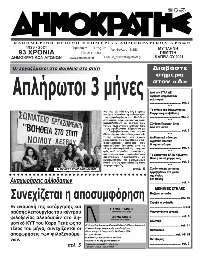 ΕΦΗΜΕΡΙΔΑ ΜΥΤΙΛΗΝΗΣ