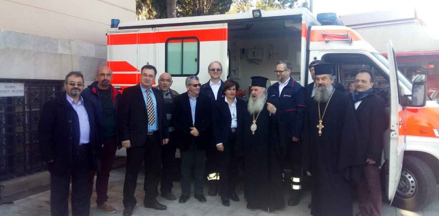 -Η τελετή παραλαβής ενός ασθενοφόρου που δώρισε ο Εθελοντικός Σύλλογος Παροχής Βοήθειας «Malteser» σε συνεργασία με την Ελληνογερμανική Συνέλευση στην Περιφέρεια Βορείου Αιγαίου,