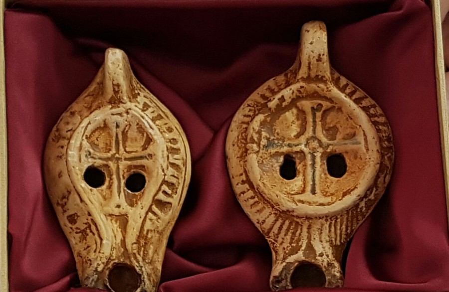 Ένα πρωτότυπο δώρο, δύο αντίγραφα πήλινων λυχνιών φωτισμού του 5ου-6ου αιώνα μ.Χ., με διακόσμηση του συμβόλου τους σταυρού, πρόσφερε η Περιφερειάρχης Βορείου Αιγαίου Χριστιάνα Καλογήρου στο Μακαριώτατο Αρχιεπίσκοπο Αθηνών και πάσης Ελλάδας κ.κ. Ιερώνυμο κατά τη διάρκεια γεύματος. Το ίδιο δώρο η Περιφερειάρχης θα δώσει αύριο στον Οικουμενικό Πατριάρχη κ.κ. Βαρθολομαίο και στον Πάπα Φραγκίσκο.