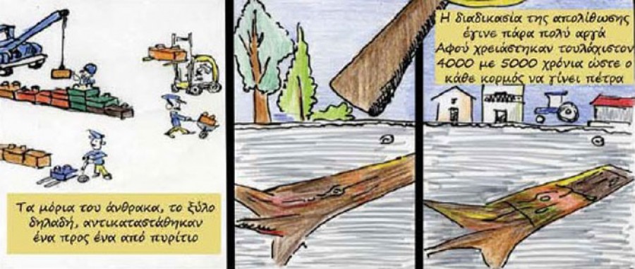 -Μέσα από τα εντυπωσιακά σκίτσα και κείμενα του Μανώλη Αντωνάκη, ξεδιπλώνεται η ιστορία του Απολιθωμένου Δάσους Λέσβου.