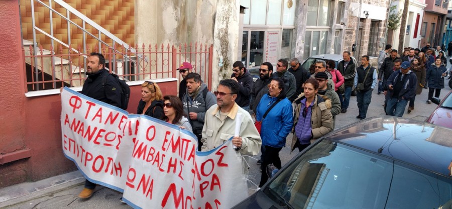 Αποφασίστηκε ομόφωνα από τους εργαζομένους, παρέμβαση στο παράρτημα του ΟΑΕΔ και οι εργαζόμενοι με πορεία, διασχίζοντας την κεντρική αγορά, κατευθύνθηκαν μαζικά φωνάζοντας συνθήματα.