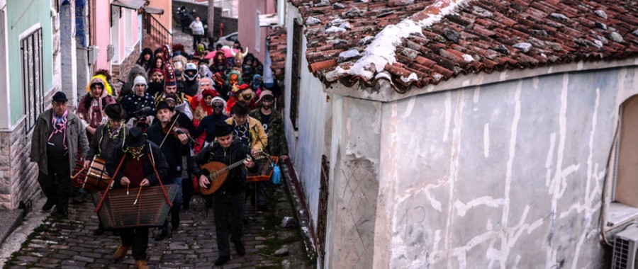 -Οι νότες από τα σαντουρόβιολα της μουσικής κομπανίας έσμιξαν με τα αποκριάτικα τραγούδια και τις ιαχές του πολυπληθούς αγερμού και ήχησαν στα γραφικά καλντερίμια της Αγιάσου,