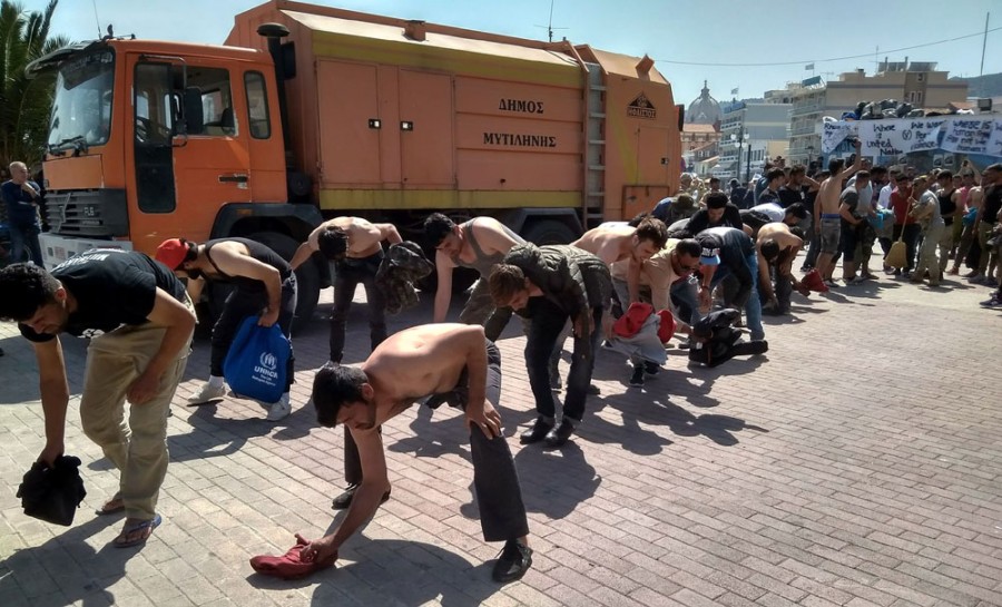 Κάποια στιγμή μάλιστα, οι αλλοδαποί έβγαλαν και τα μπλουζάκια τους, δείχνοντας συμβολικά ότι μπορούν οι ίδιοι να καθαρίσουν το χώρο που βρίσκονται.