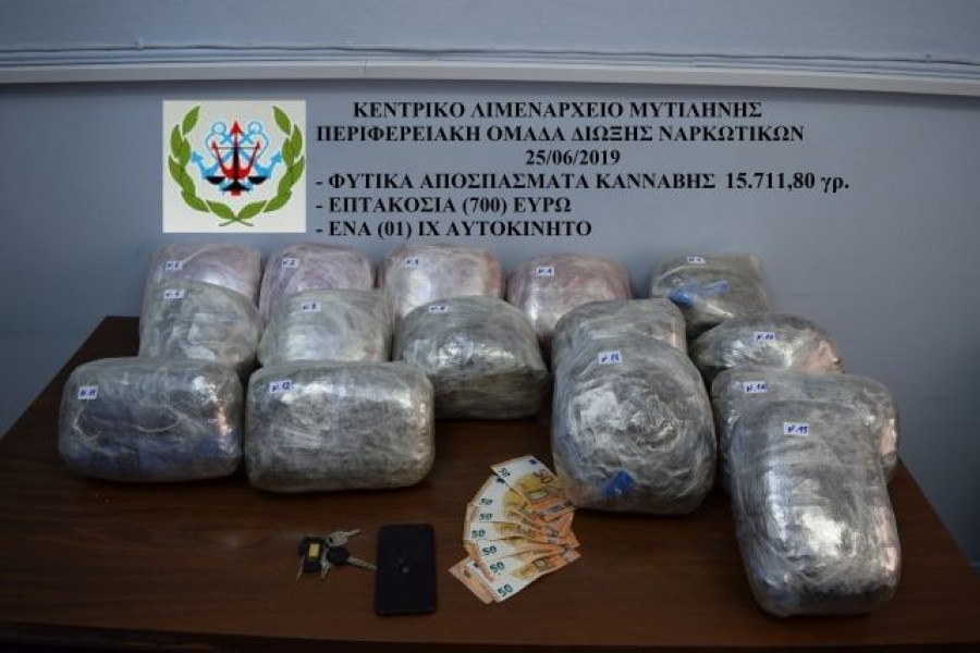 Συγκεκριμένα, σε έλεγχο που διενεργήθηκε από τα ανωτέρω στελέχη και μετά από ένδειξη αστυνομικού σκύλου ανίχνευσης ναρκωτικών ουσιών, σε αυτοκίνητο που οδηγούσε ο 32χρονος κατά την αποβίβασή του από Ε/Γ-Ο/Γ πλοίο στο λιμάνι της Μυτιλήνης, βρέθηκαν στο πορτμπαγκάζ, δεκαπέντε ανισοβαρείς πλαστικές συσκευασίες, με 15.711,80 γρ. χασίς.