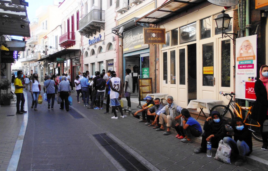 Ουρές ατελείωτες μπροστά από τράπεζες και πολυκαταστήματα. Όπου κι αν γύριζε το μάτι, δεν έβλεπε τίποτ' άλλο, παρά μόνο αυτή την εικόνα, που προκαλούσε ένα ανάμεικτο συναίσθημα φόβου και άγχους. Και τούτο γιατί το μεγαλύτερο ποσοστό των ανθρώπων αυτών ή δεν φορούσε την προστατευτική μάσκα, ή την χρησιμοποιούσε ως ασπίδα του πηγουνιού και του λαιμού τους. Κανένα μέτρο προστασίας, ούτε τήρηση των αποστάσεων. Ο ένας πάνω στον άλλον, περίμεναν ανυπόμονα την σειρά τους.