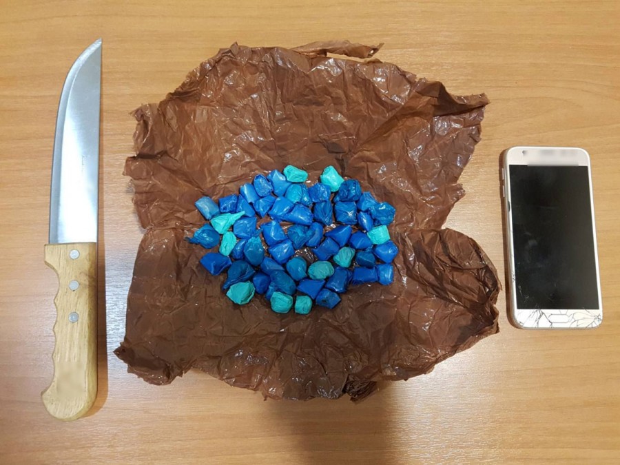 Η ηρωίνη, το μαχαίρι, αλλά και κινητό τηλέφωνο του δράστη με αντίστοιχη κάρτα sim, κατασχέθηκαν.