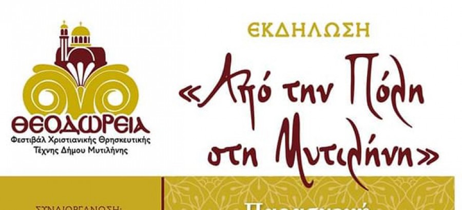 -Την Παρασκευή στις 8 το βράδυ, θα πραγματοποιηθούν τα εγκαίνια του Φεστιβάλ Χριστιανικής Θρησκευτικής Τέχνης τα «Θεοδώρεια» στο Δημοτικό Θέατρο Μυτιλήνης,