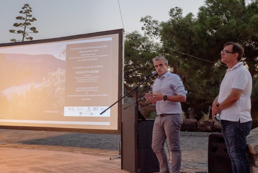Στην έναρξη της εκδήλωσης, στο υπαίθριο αμφιθέατρο του Μουσείου, ο Καθηγητής Νίκος Ζούρος, Διευθυντής του Μουσείου Φυσικής Ιστορίας Απολιθωμένου Δάσους Λέσβου, καλωσόρισε τους συμμετέχοντες και αναφέρθηκε στο ιστορικό δημιουργίας της έκθεσης και τις δράσεις για προβολή της ιστορίας της ελιάς στη Λέσβο, η οποία είναι άμεσα συνδεδεμένη με την ιστορία και τη ζωή των κατοίκων του νησιού.