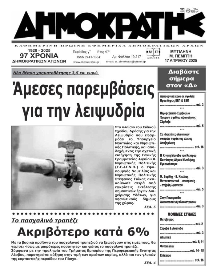 ΕΦΗΜΕΡΙΔΑ ΜΥΤΙΛΗΝΗΣ