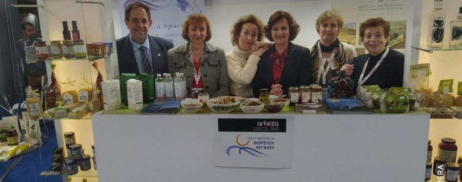 Η Περιφέρεια Βορείου Αιγαίου συμμετείχε με ένα μοντέρνο ενιαίο περίπτερο, στο οποίο φιλοξενήθηκαν 14 επιχειρήσεις με δικό τους εξατομικευμένο χώρο και με φυσική παρουσία εκπροσώπων τους, ενώ ταυτόχρονα εκτέθηκαν ομαδικά αλλά διακριτά, ασυνόδευτα προϊόντα του κλάδου άλλων 21 επιχειρήσεων από όλα τα νησιά των 3 Περιφερειακών Ενοτήτων. Σημειώνεται, ότι στη συγκεκριμένη εμπορική έκθεση, απαγορευόταν ρητά οι λιανικές πωλήσεις.