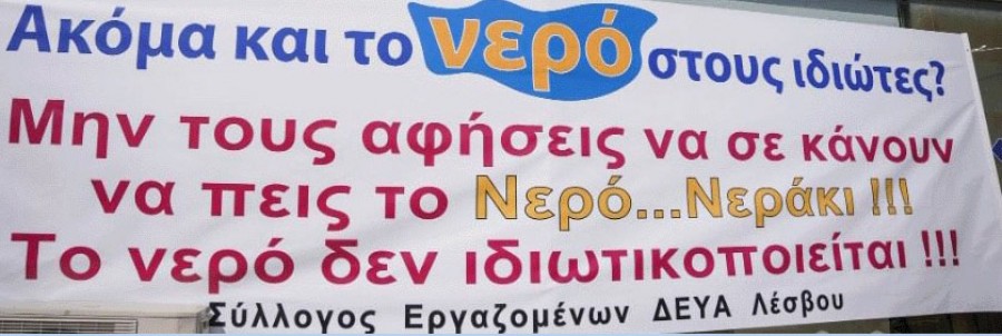 Η Λαϊκή Συσπείρωση του δήμου Δυτικής Λέσβου κατακρίνει τον δήμαρχο Τ. Βέρρο για την άρνησή του να συμπεριλάβει στα θέματα ημερήσιας διάταξης το θέμα της ιδιωτικοποίησης του νερού, και ζητά από τον λαό συσπείρωση για διεκδίκηση: