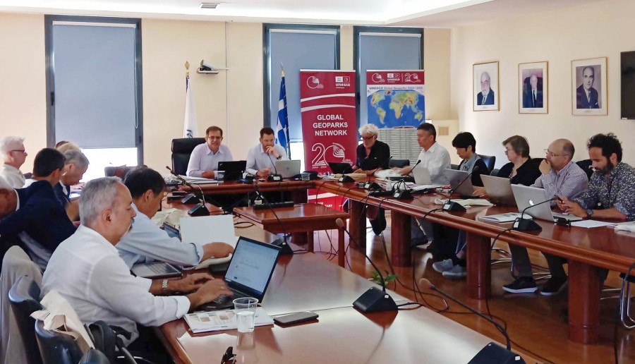 Η δια ζώσης συνάντηση του Εκτελεστικού Συμβουλίου του Παγκόσμιου Δικτύου Γεωπάρκων συζήτησε τις μεγάλες προτεραιότητες, τα προβλήματα, αλλά και τις προοπτικές που ανοίγονται από την καθιέρωση της αναγνώρισης των Παγκόσμιων Γεωπάρκων UNESCO, για περιοχές που φιλοξενούν γεωλογικά μνημεία παγκόσμιας σημασίας και πραγματοποιείται παράλληλα στο πλαίσιο του εορτασμού των 20 χρόνων από την ίδρυση του Παγκόσμιου Δικτύου Γεωπάρκων.