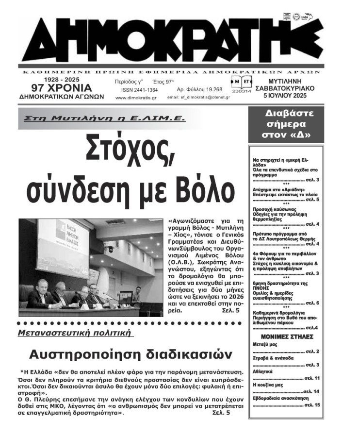 ΕΦΗΜΕΡΙΔΑ ΜΥΤΙΛΗΝΗΣ