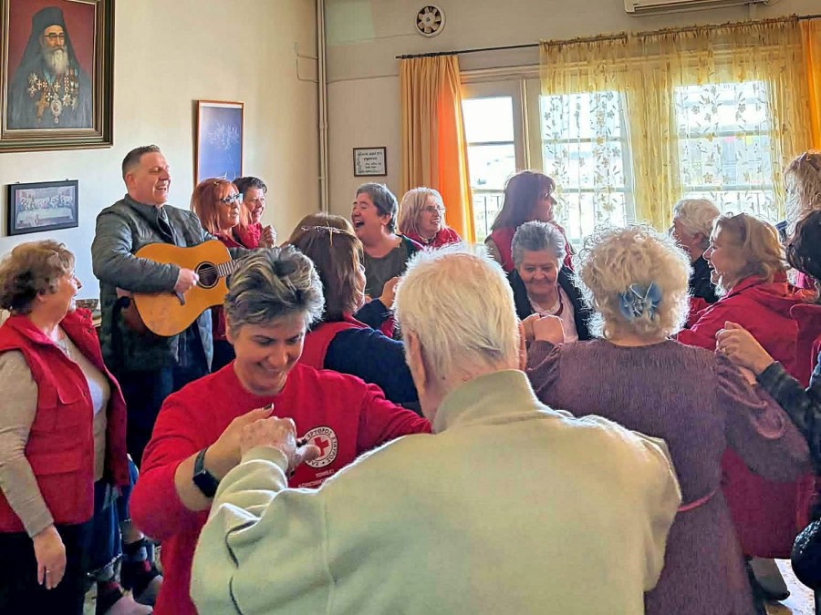 -αφού χόρεψαν και τραγούδησαν μαζί με τον μουσικό Π. Γαληνό και τους εθελοντές Κοινωνικής Πρόνοιας του Τμήματος.