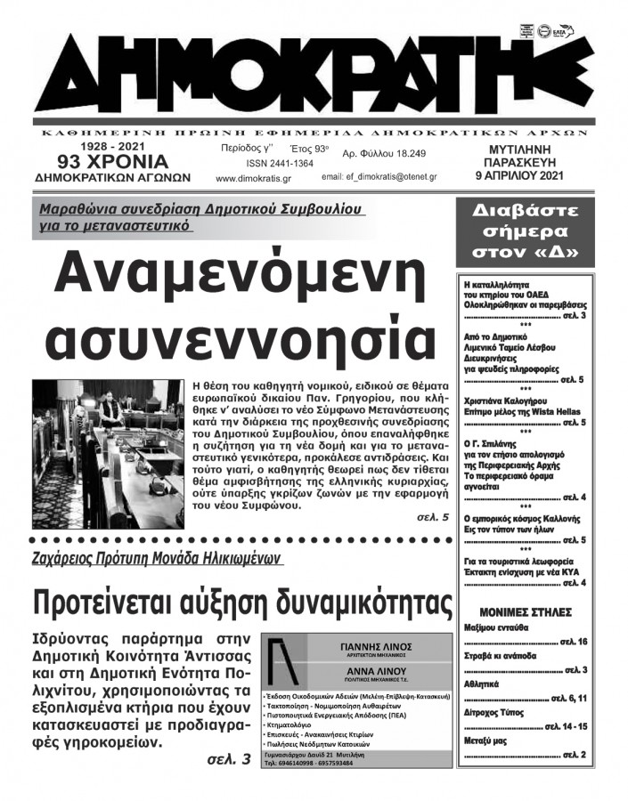 ΕΦΗΜΕΡΙΔΑ ΜΥΤΙΛΗΝΗΣ