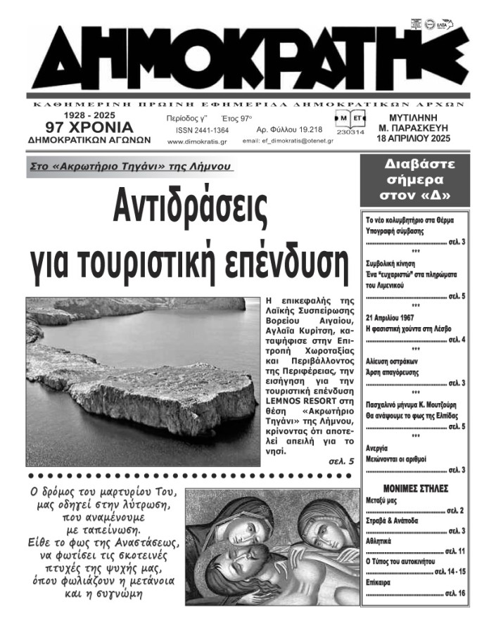 ΕΦΗΜΕΡΙΔΑ ΜΥΤΙΛΗΝΗΣ